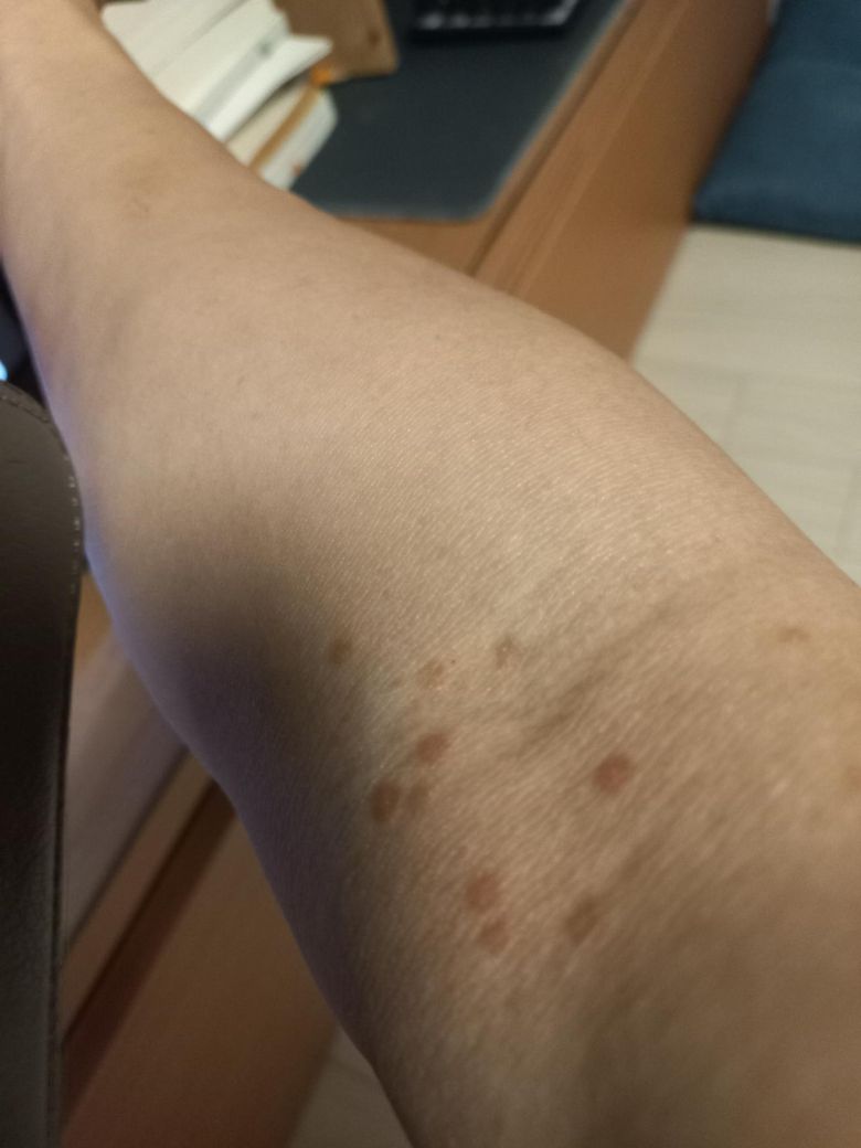 충분히 가능성 있습니다. 사진상으로는 팔에 여러 개의 둥글고 경계가 비교적 뚜렷한 갈색 반점이 산재해 있으며, 직업적으로 습한 환경(수영장)과 땀 노출이 많은 점을 고려하면 표재성 진균 감염, 즉 체부백선이나 어루러기 계열을 우선 의심할 수 있는 양상입니다. 다만 현재 병변은 붉게 활성 염증이 있는 상태라기보다, 반복 감염 후 남은 색소침착 양상이 일부 섞여 있을 가능성도 있습니다. 이 경우 “재발”로 느끼는 것 중 일부는 실제 감염이 아니라 이전 염증 후 흔적일 수 있습니다.