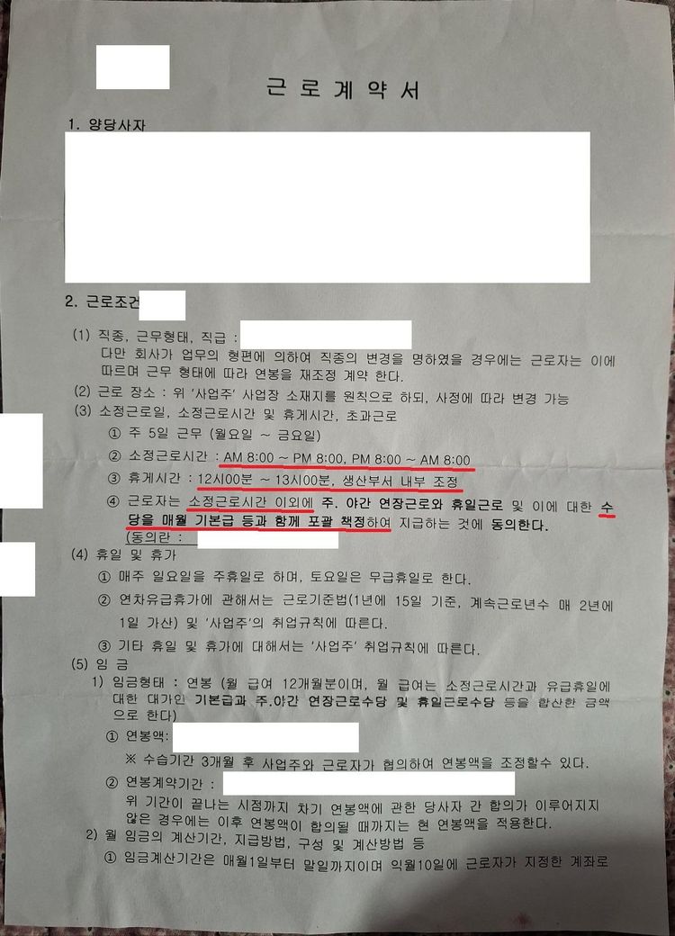 이 근로계약서 소정근로시간이 이게 맞나요?(포괄임금제)