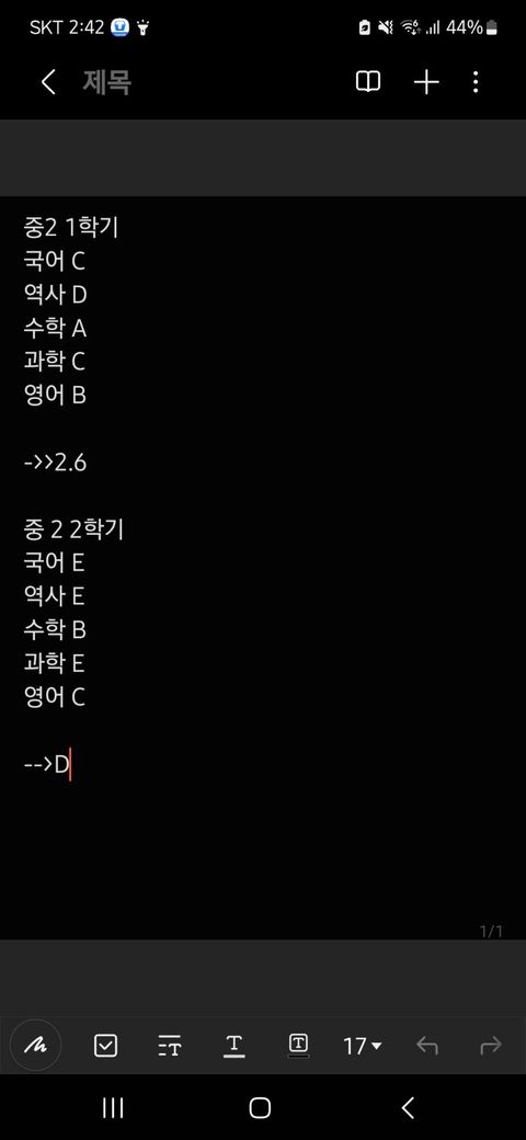 아래 사진이 중2 1,2학기 성적이고요 이번 3학년 성적은 아직 안나왔어요..