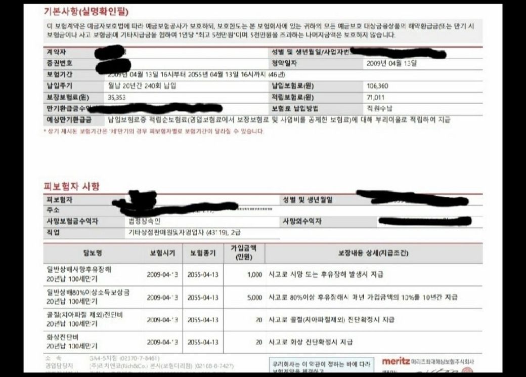 가입한 보험 증권 첨부 합니다 확인부탁드려요