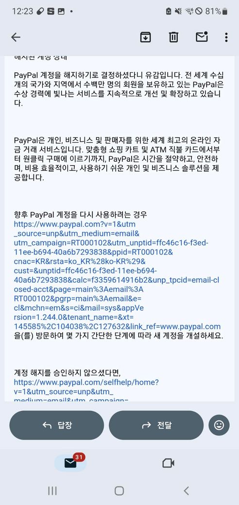 제가 옛날에 페이팔을 쓰다가 바로 탈퇴를 했는데 요즘 저의 정보가 털릴까 걱정이 되서 마음이 불편합니다 일단은 이메일로 문자메시지가 왔는데 이렇게 하면 명의도용 괜찮은거 맞나요