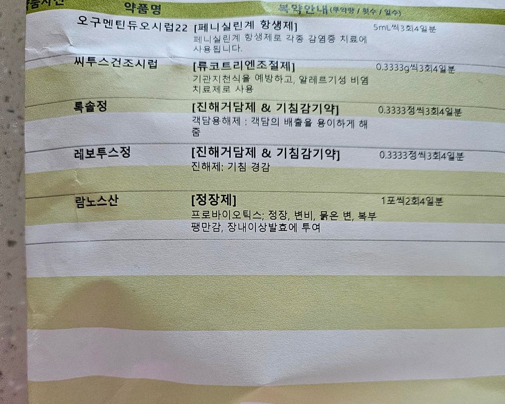 6/12~6/20 열(중이염) 항생제포함 감기약 복용