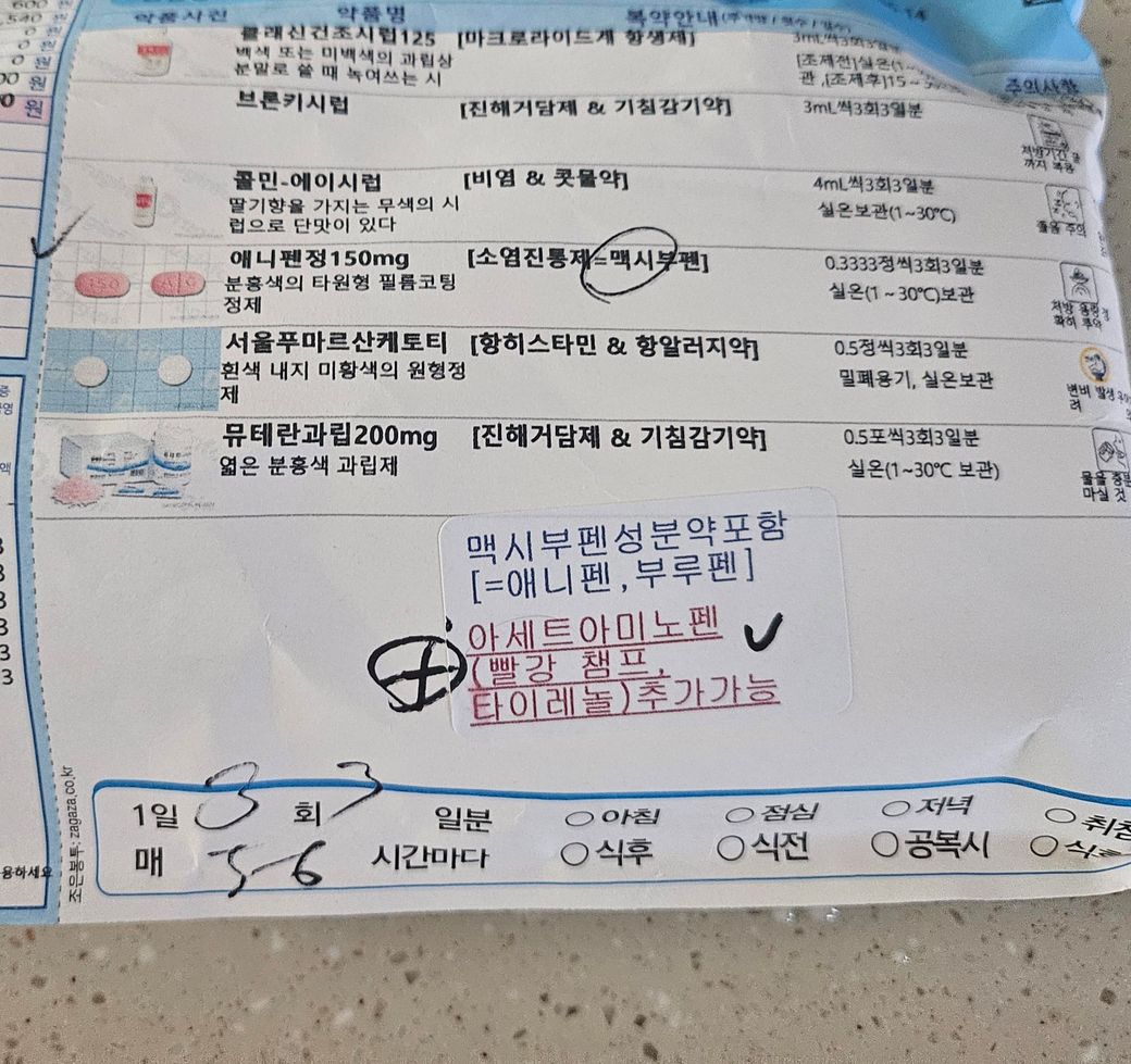 6/1~6/11 기침,콧물등으로 코감기약 복용