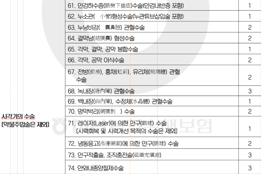 1 ~ 5종 수술비에서는 보상하지 않는 수술입니다.