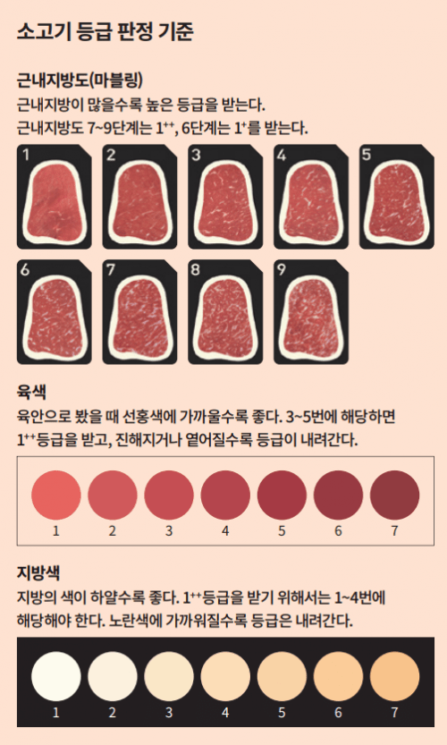 3등급 ~ 1++등급까지 총 5가지의 등급이 일반적이죠.