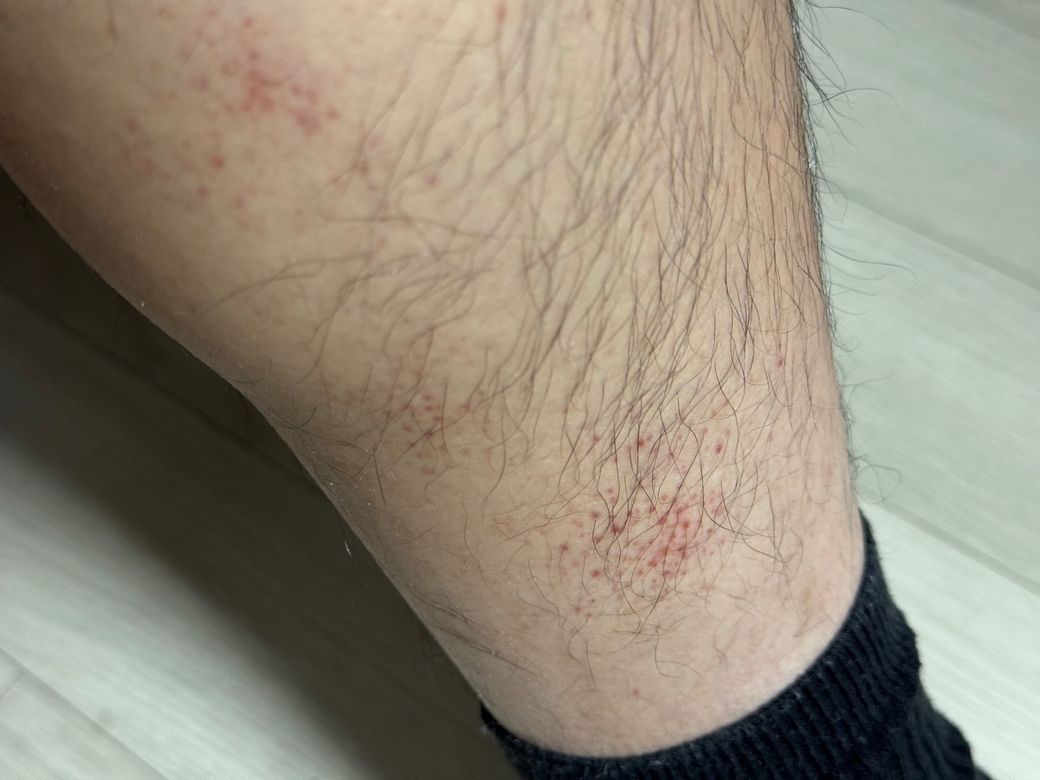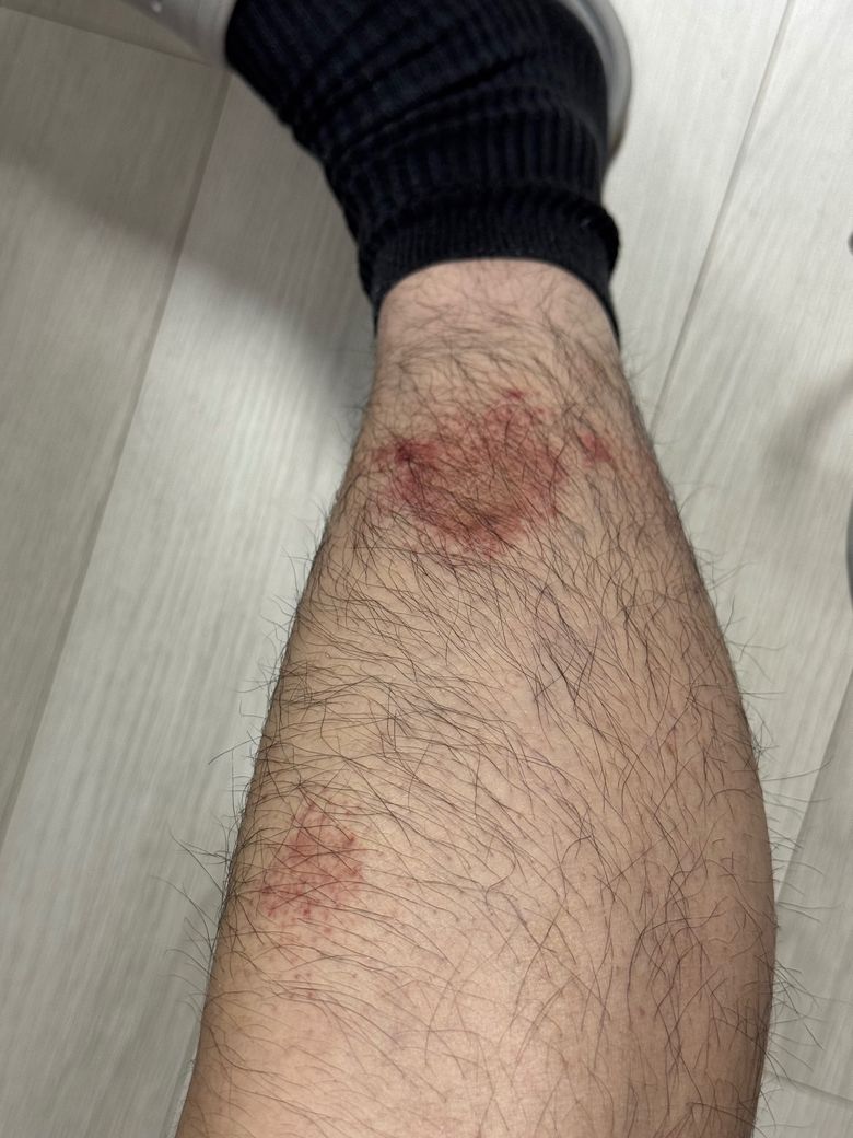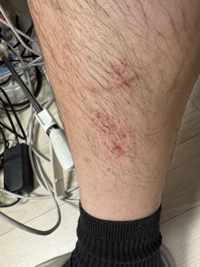 종아리가 바지나 양말에 반복적으로 문질러져 생기며, 가렵지 않은 경우가 많습니다.