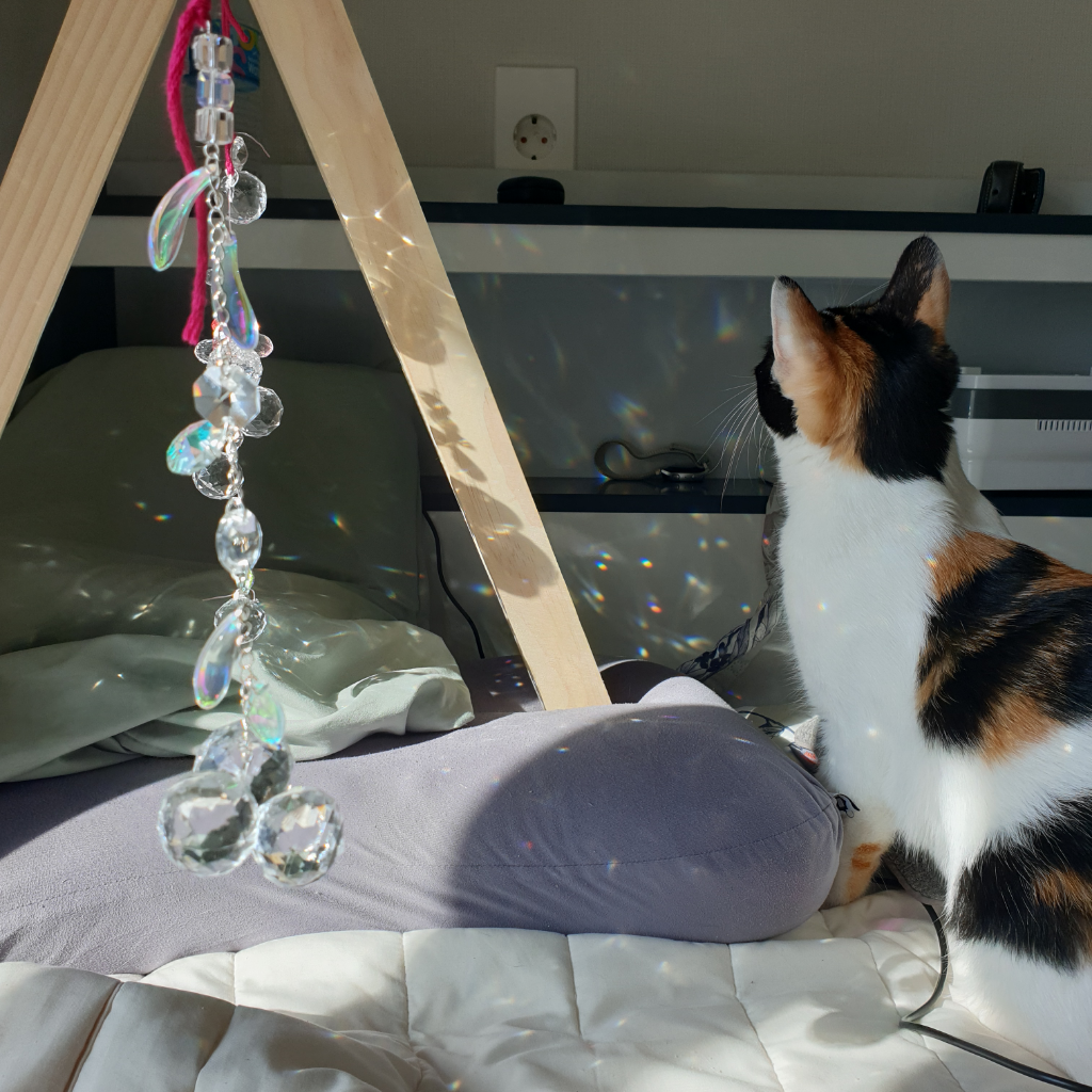 햇빛이 옮겨가서 빛이 사라지면 저한테 와서 울어요 그럼 썬캐쳐 자리를 옮겨주거든요