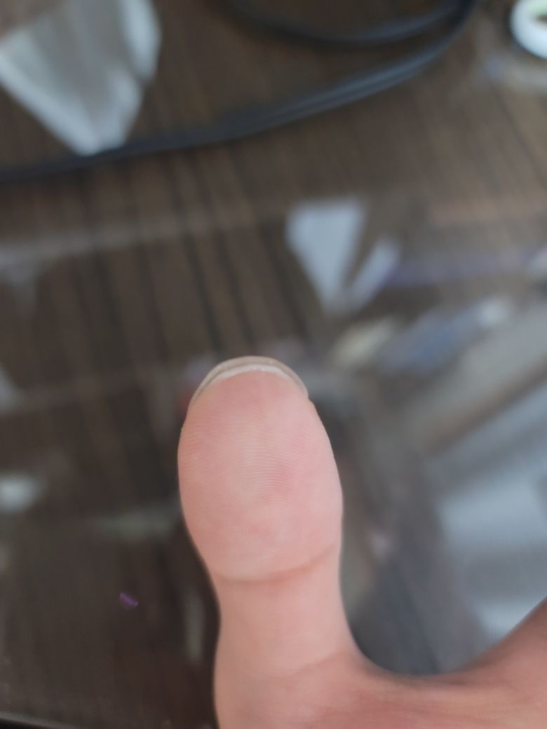 한 2주정도 되었는데요 왼쪽 엄지손톱 밑 살이 밀려나왔다고 해야하나 신경이 쓰입니다