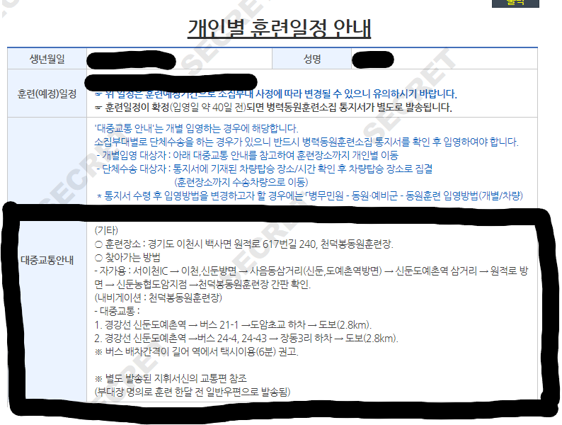 이게 제가 동원훈련 받으로 가야되는 장소인가요?