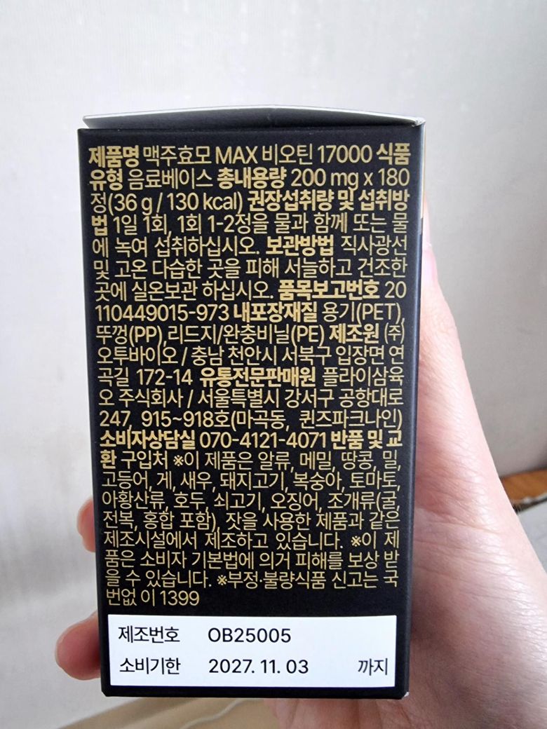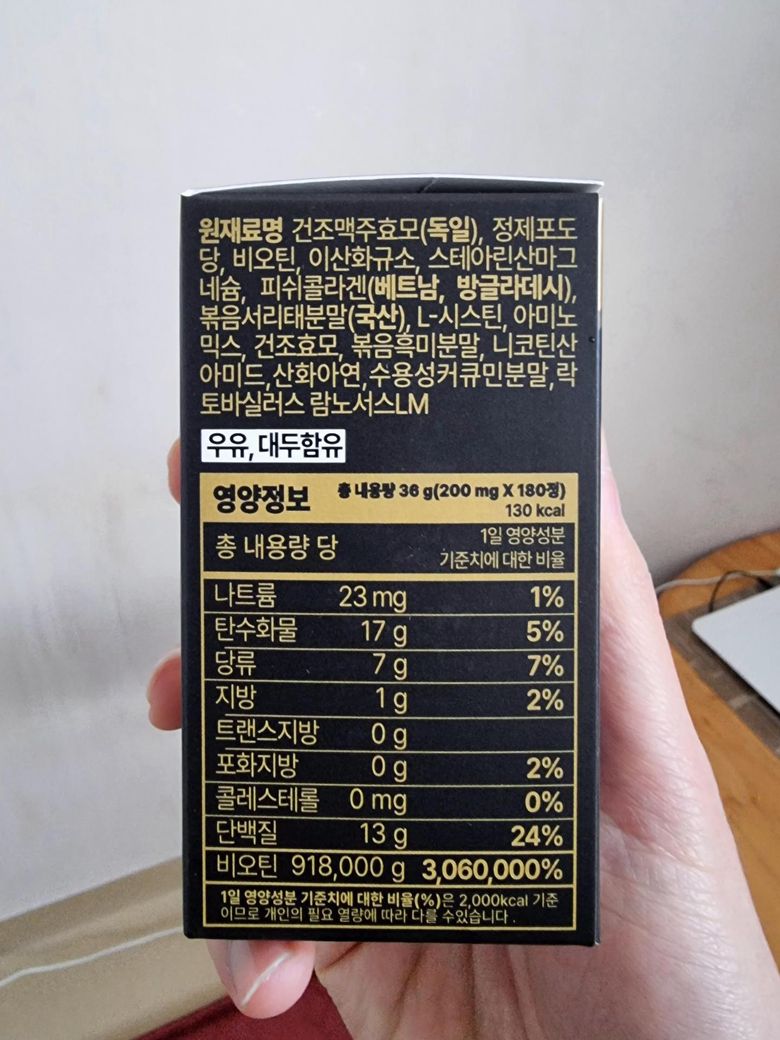 해당 제품은 일반의약품이나 건강기능식품으로 허가를 받은것이 아니라서 비오틴 이외에 다른 성분별 함량에 대해서는 정확히 파악하기가 어렵습니다