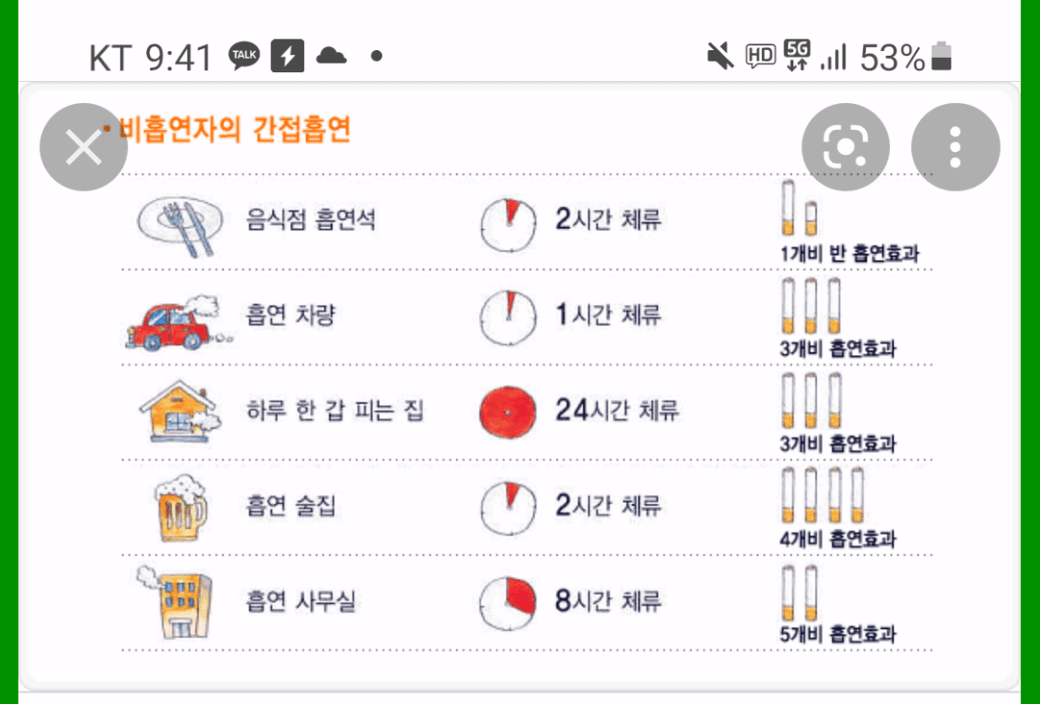 간접흡연 이미지를 보니까 이렇게 나오던데요 간접흡연피해가 이렇다고 보면되나요? 여러가지로 안좋은데 어떻게 피해야할지 모르겠네요 마스크써도 비흡연자입장에서 기분나쁘네요 ....