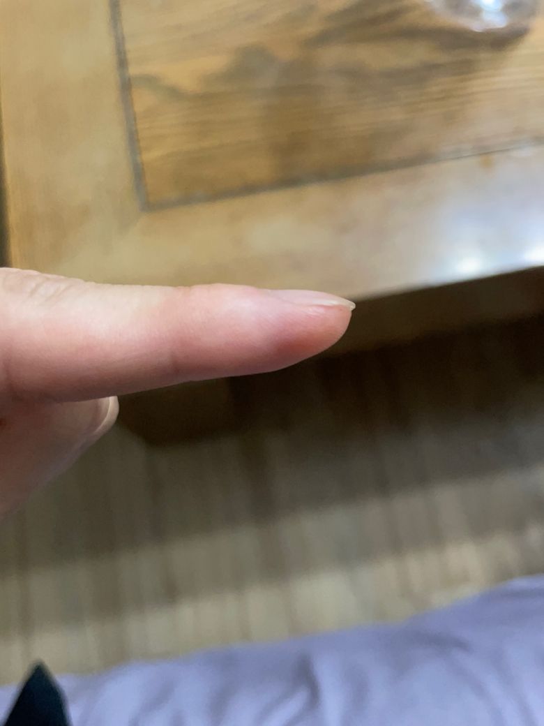 두툼해보이긴하지만 곤봉지 로 관찰이 되지않습니다. 정상으로 보입니다. 단순히 경과 관찰만하셔도 될것로 보입니다.
