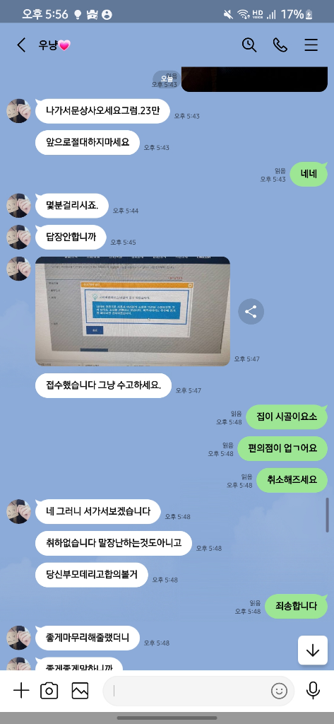 3. 라인 대화 무시 하세요. 절대 돈같은거 주지 마시구요.