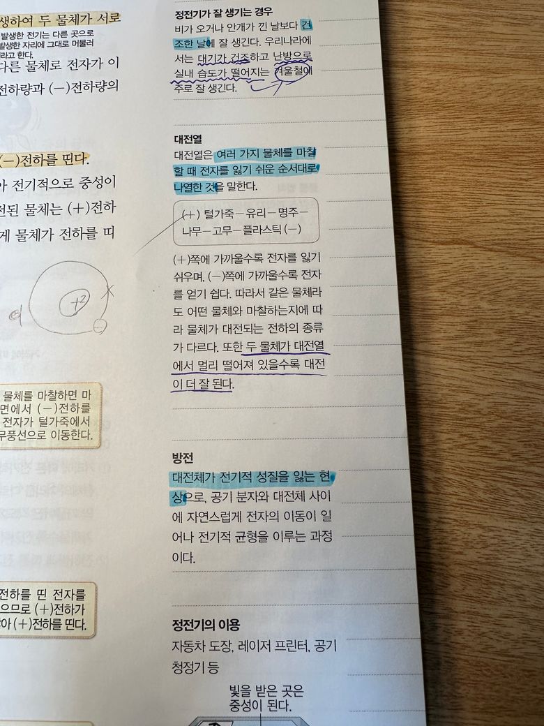 중2 과학 1학기 대전과 대전열 질문.