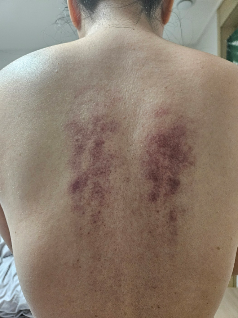 마사지 후 등이 멍이 들고 통증이 있다면, 다음과 같은 원인일 수 있습니다.