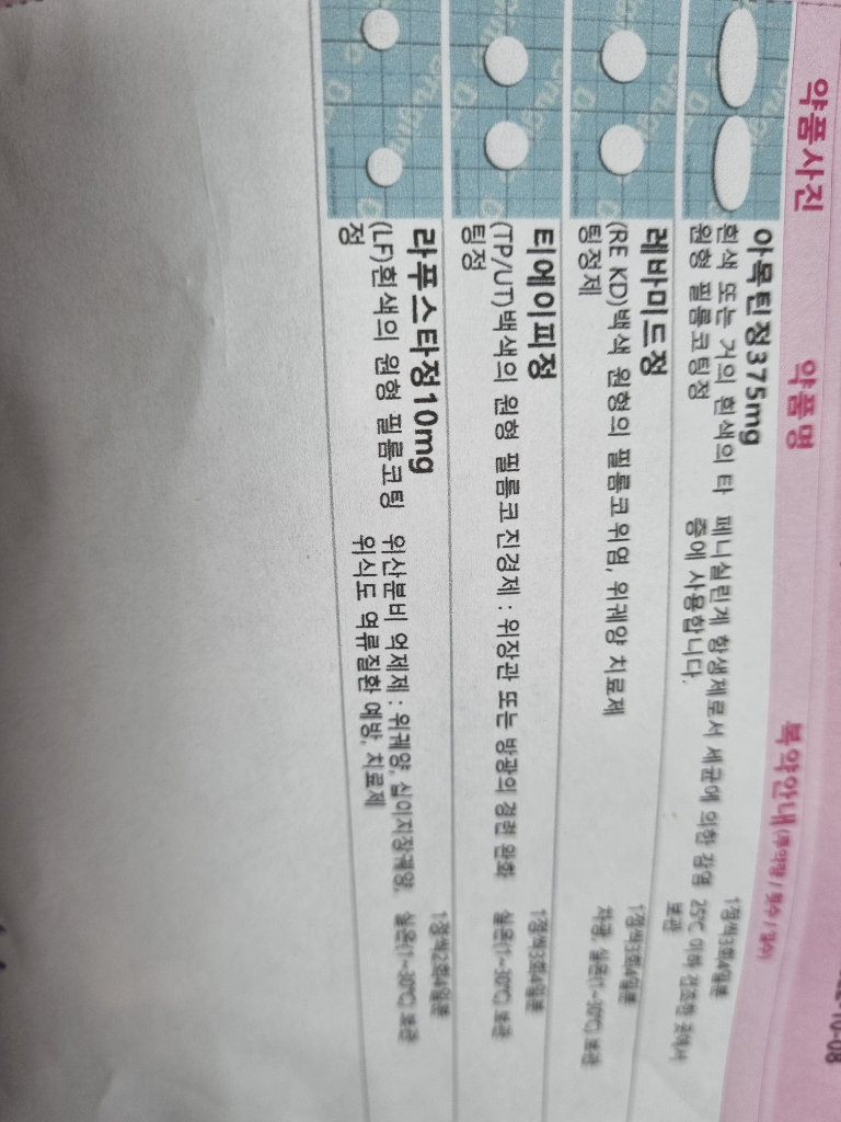 아목틴정을 제외하고 나머지약만 복용하셔도 상관없습니다. 진경제, 위장약이며 말씀하신 위통, 위염에 작용합니다.