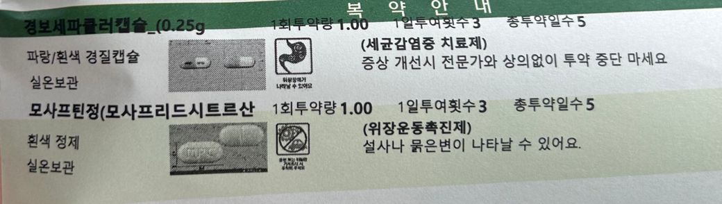 처방받은 약 중 모사프틴정은 위장운동을 촉진하는 약으로 소화가 빨리 될 수는 있습니다.