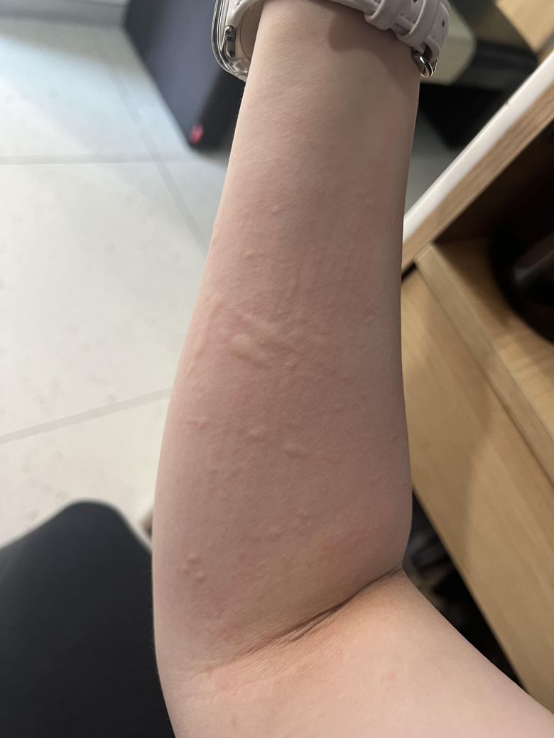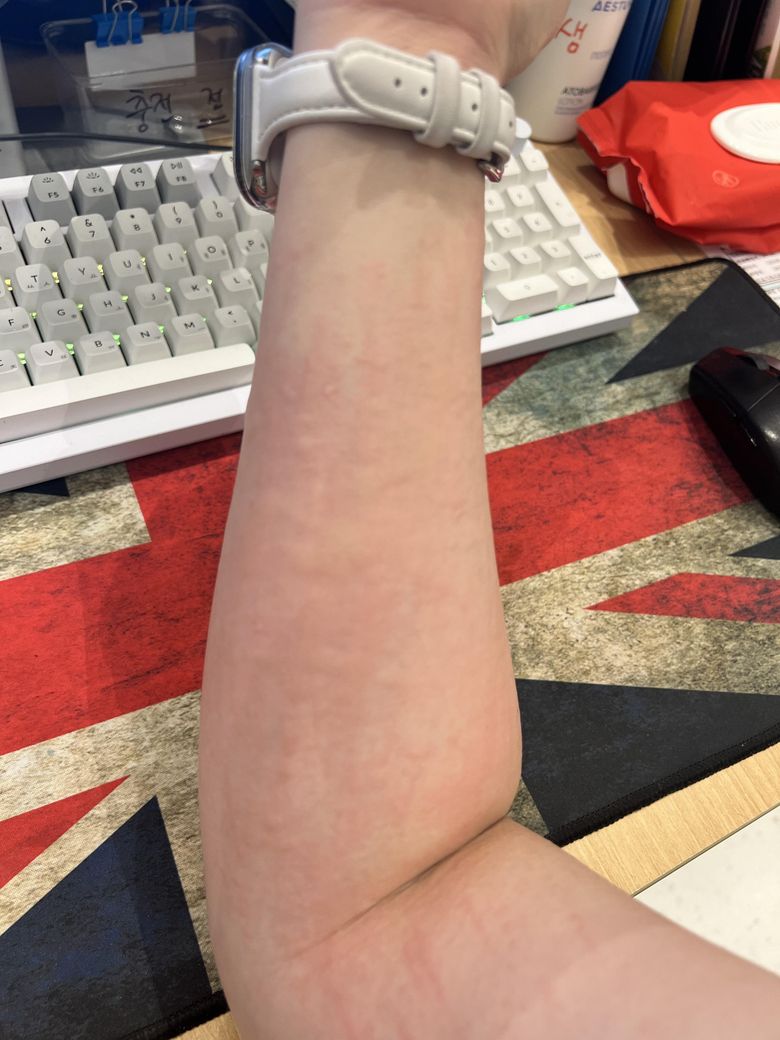 긁다보면 팔 다리 손등 발 두드러기가 올라와요..너무 간지럽고 배쪽에는 띠처럼 올라와요..처음임 모기인즐 알았는데 그게 아닌거같아서요..뭘까요..???