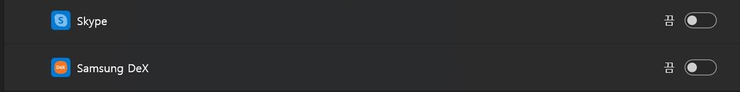 보다시피 끔 버튼만 있을뿐 아예 삭제하는 방법을 모르겠어요.
