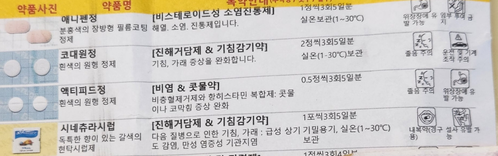 소염진통제나 몸살약으로 주로 쓰이는 애니펜정이 위장점막에 자극이 있을 수 있습니다.