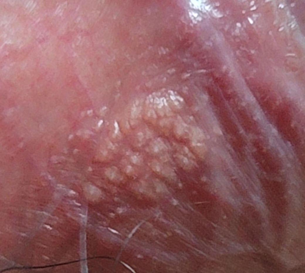 단순 피지라고 넘어가기에는 병변의 숫자가 많으며 군집된 양상으로 마치 수포성으로 생긴 병변이기 때문에 헤르페스의 가능성을 배제할 수 없어 보입니다. 관련하여서는 충분히 의심해볼 수 있으며 가능성이 존재하기 때문에 혼자 고민하시기 보다는 실질적으로 비뇨의학과 진료 및 검진을 통한 구체적인 감별 진단을 받아보시는 것이 적절할 것으로 사료됩니다.