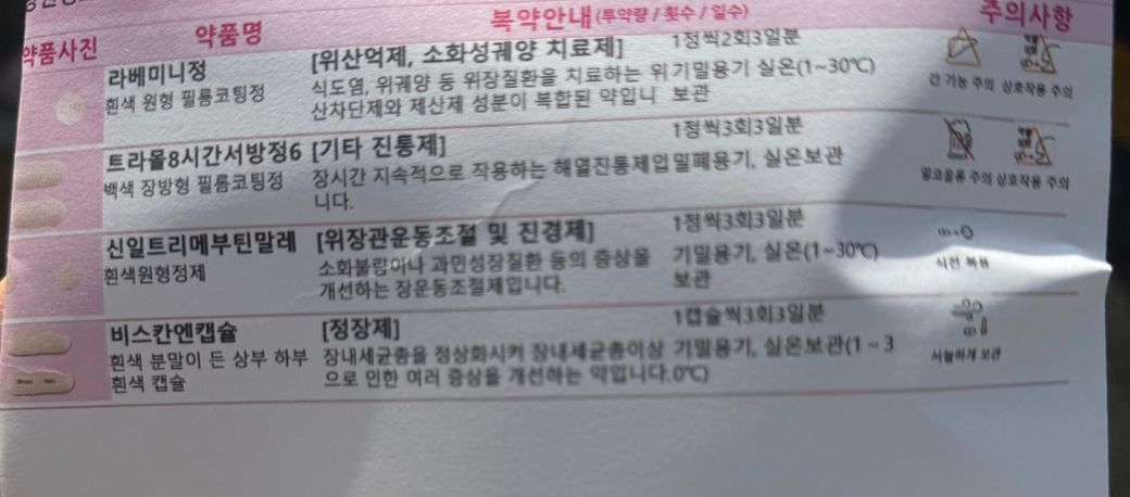 라베미니를 제외하고는 일반적으로 감기약이나 위장약들로 많이 들어가는 성분이라서 이 친구들은 아닐 것 같긴합니다.
