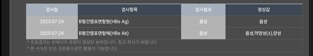 B형 간염 3차까지 맞고, 피뽑고 결과 나왔는데