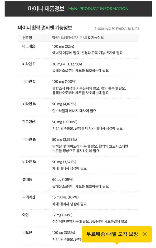 따라서 2정 복용해야 비타민c를 100mg 섭취 가능합니다.