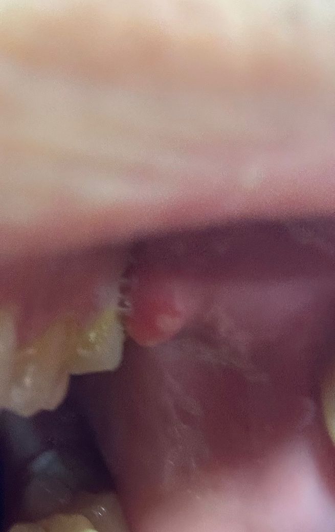 입 안 점막이 살짝 뜯어져 나온거같은 형태에요 안쪽 어금니에 닿는 부분이에요 만지면 아프진 않고 그냥 단순한 구내염일까요? 궁금해서 올려봅니다 답변부탁드려요!