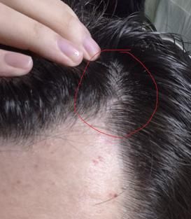 M자 부위의 모발이