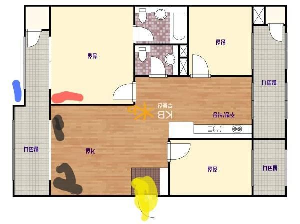 노란색이 현관이고 빨간색이 현재 안방 벽걸이고 파랑색이 실외기 설치 한 곳인데요
