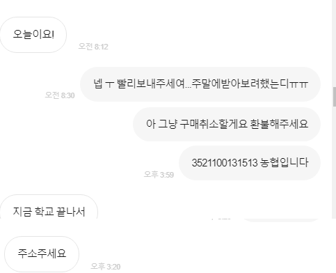 화요일 구매의사표현하고 입금했으나 2일이 지나도록 배송을 안해주셔서 취소 및 환불요청했습니다