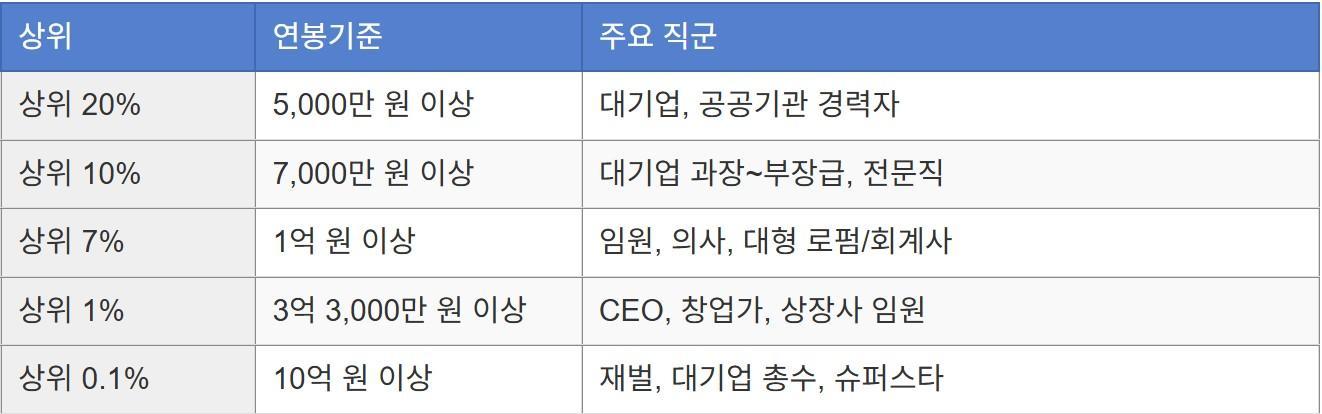 연봉1억이란 우리나라에서 어느정도 위상이 있는건가요?