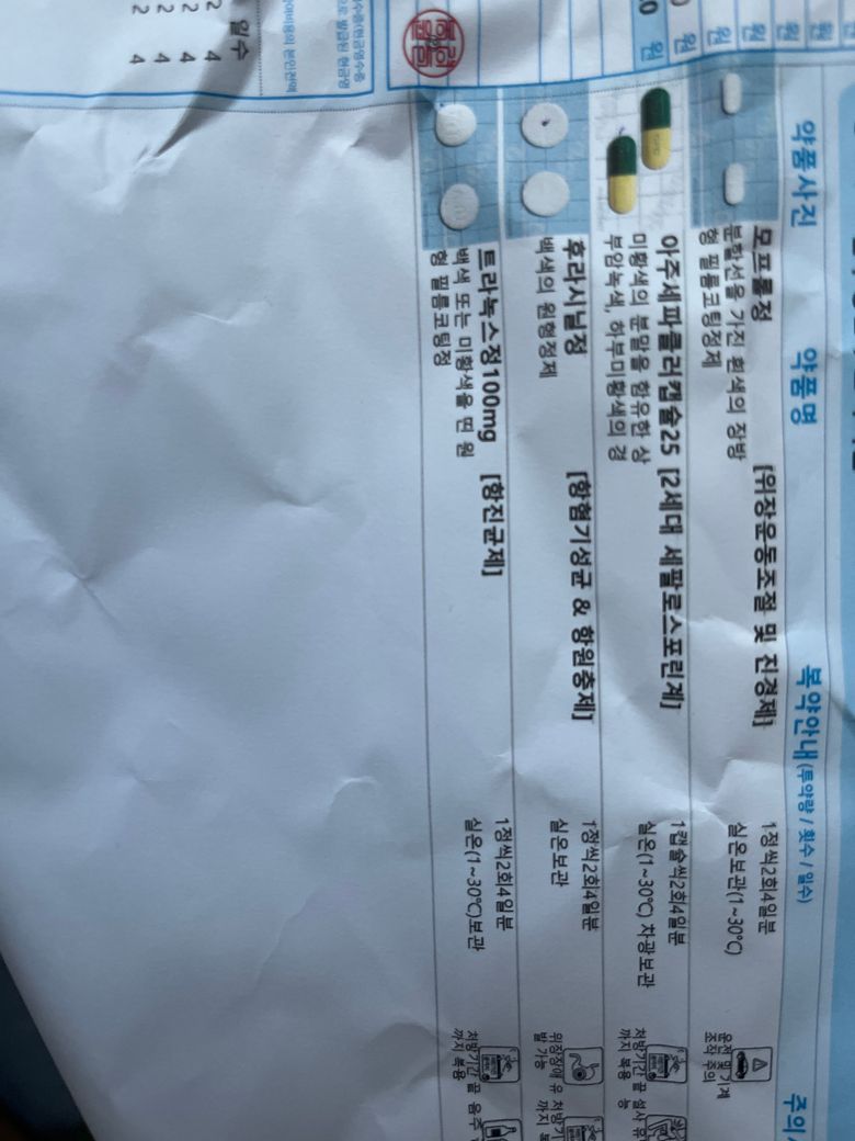 하나는 질염때문에 처방받은 약이고 또 하나는 위장약입니다.