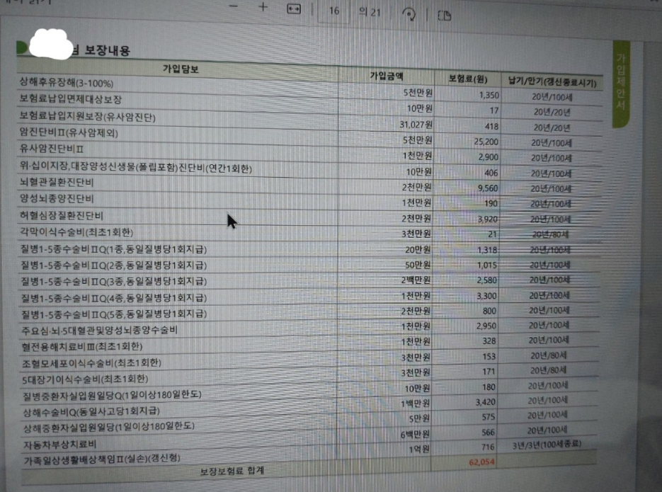 둘 다 넣더라도 가입금액만 잘 조정하면 괜찮은 구성으로 만들 수 있습니다.현재 이 보장으로 62,050원의 보험료가 나오는데
