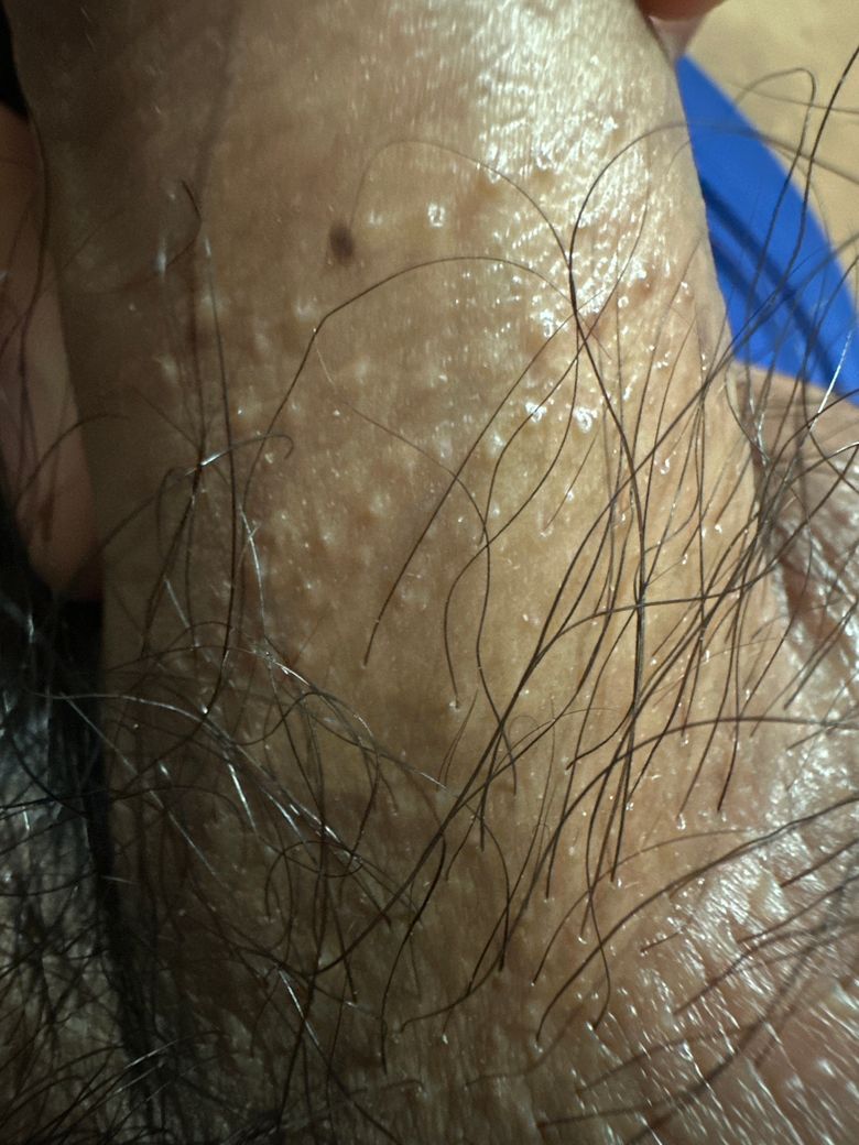 성기에 오돌토돌 올라와있고 가렵지도 않고 아프지도 않은데 사진 보시면 저건 성기 헤르페스인지 궁금해요 사타구니 사진도 한번 봐주세요