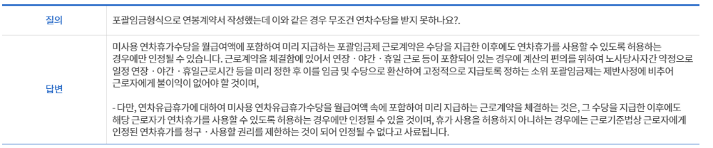 3.포괄임금에 연차수당이 월급의 2.8% 들어가 있었지만 이는