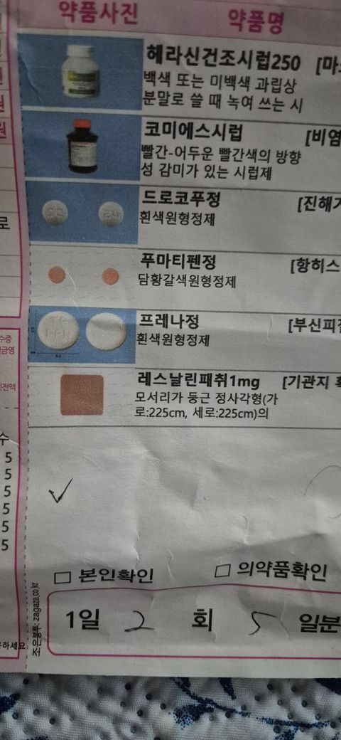 처방약을 먹은지는 4시간 정도 지났는데 기침이 심해