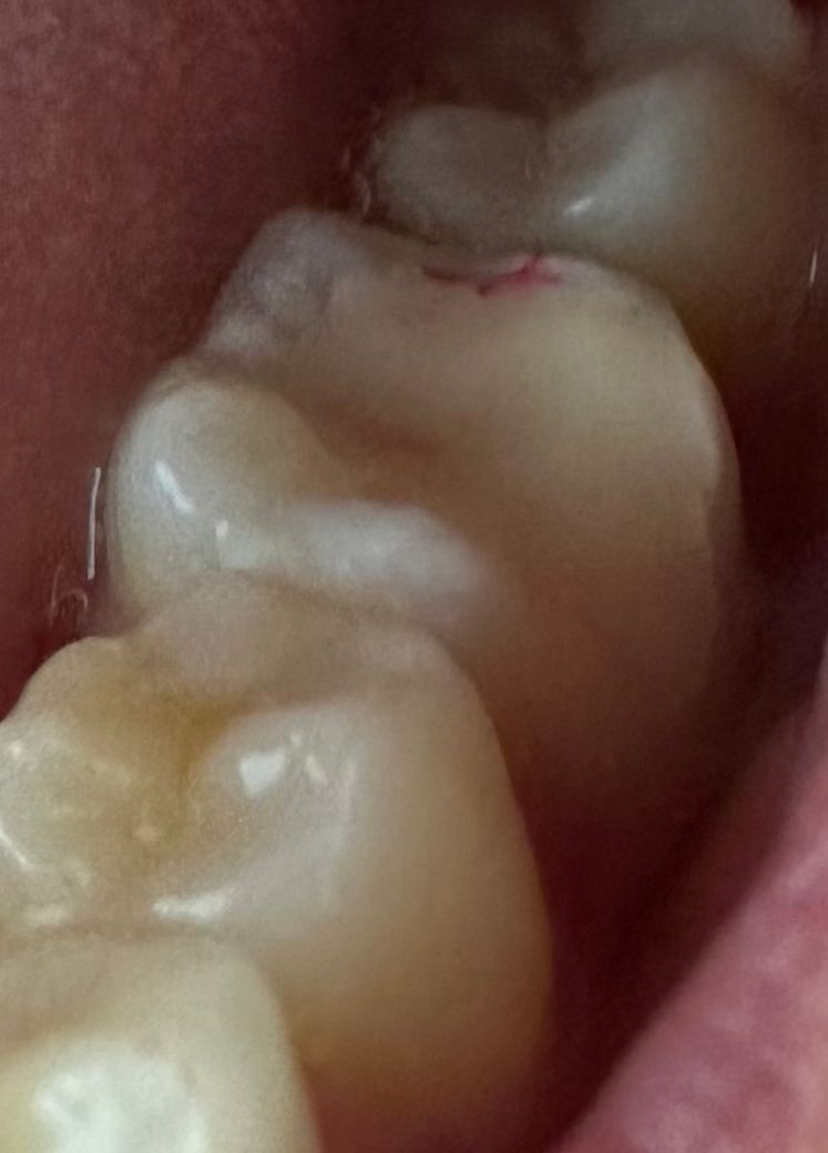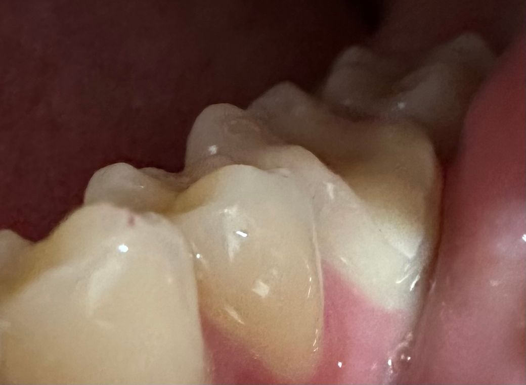 엑스레이로는 옆면 충치라 잘 보이지 않는다며 사진을 찍어 치아를 직접 보여주셨고 겉보기에는 작아 보이지만 파내 보면 클 수도 있다고 하셔서 일단 조금만 파보기로 했어요