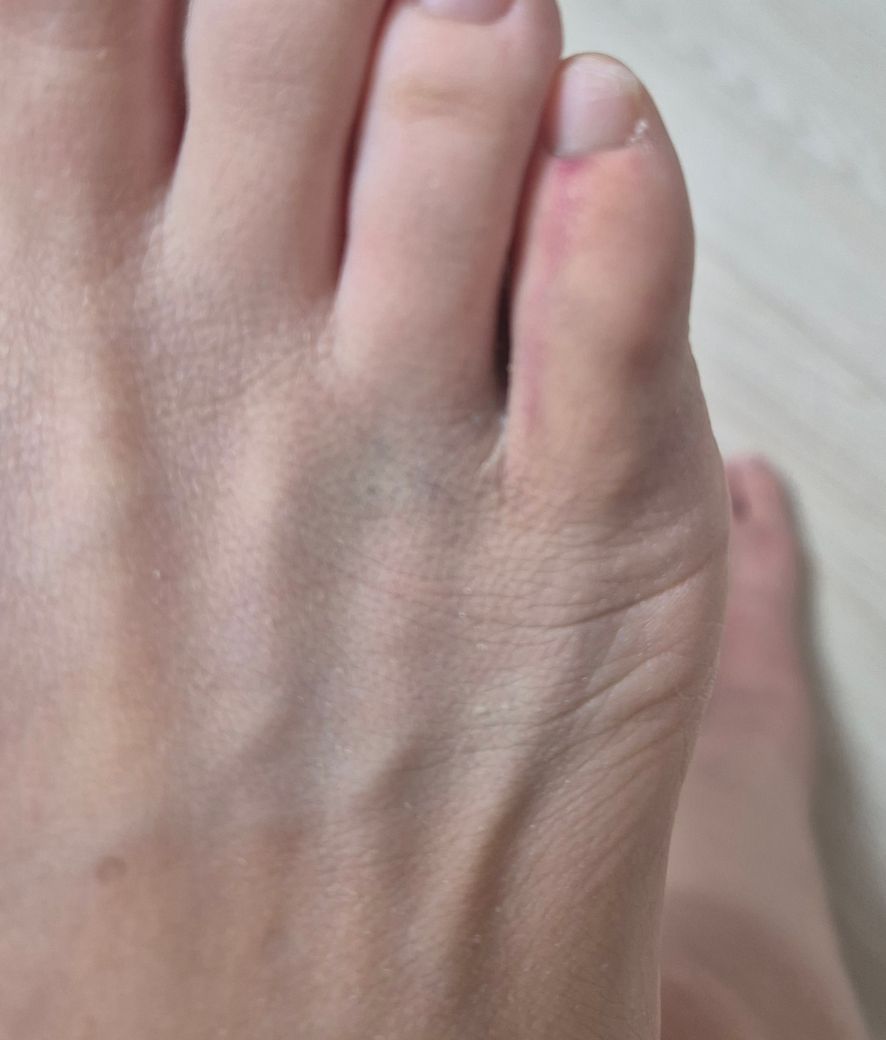 일요일에 그릇이 무릎높이에서 떨어지면서 모서리에 새끼발가락이 맞았어요. 맞자마자 좀 부었고, 걸을땐 아무렇지 않은데 신발 신을때 조금 힘이들어갔는지 아프다가 신발신고는 바로 괜찮아졌어요. 만졌을때도 그리 아프지 않구요. 저녁에는 발가락 아래 부분이 보라색으로 멍들었고 다음날에는 붓기는 가라앉았지만 멍이 조금씩 퍼져서 넷째발가락과 새끼발가락 사이까지 퍼졌고 어제는 그 상태에서 살짝 더 퍼진 상태에요. 멍은 색깔이 많이 연해졌는데 나아가느라 퍼진 걸까요, 아님 병원에 가보아야 할까요. 제가 왼쪽다리를 다친 상태라 병원에 가기 힘들어 일단 여쭈어봅니당 ㅠㅠ