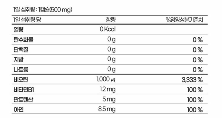 비오틴은 1mg(=1000㎍) 들어있는 것으로 보입니다