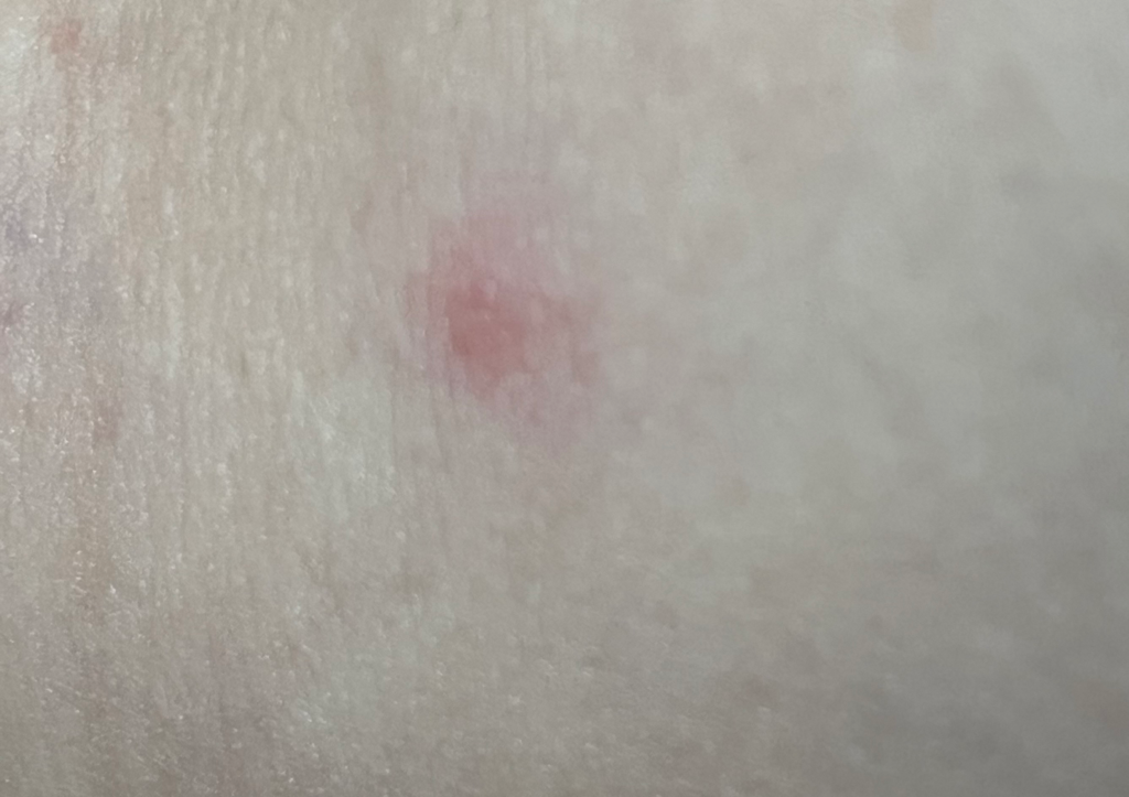 1-4mm 정도 작은 농포가 여드름처럼 붉게 올라 옵니다.
