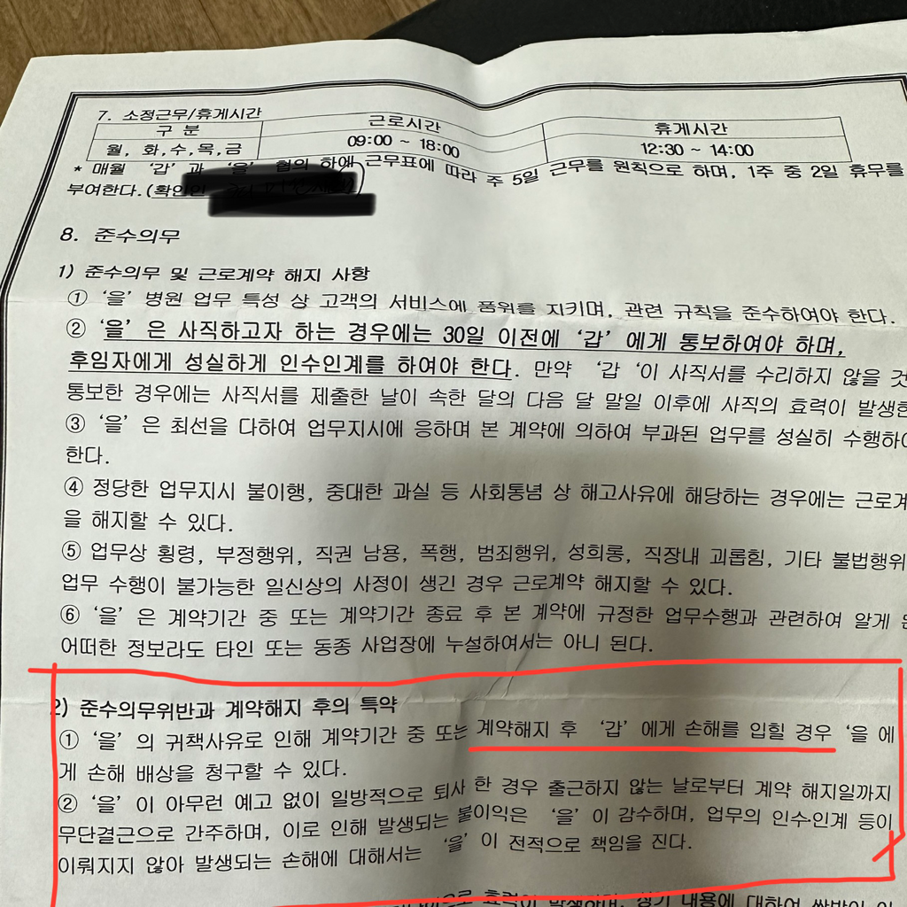 10월12일까지 일한다고 말 안하고 13일부터 출근하지 않으면 고용주가 손해배상 청구할수 있다는건가요?