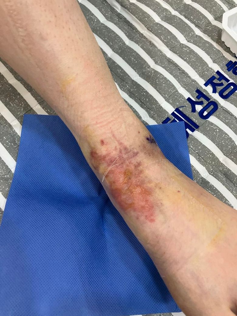 선생님께 발이 불에 타는것같이 아프다고 말하자 압박붕대를 풀어줬는데 발등이 화상입은것처럼 엄청 시뻘갰습니다. 의사선생님은 시간이 지나면 좋아진다고 하는데....현재 발람만 불어도 굉장히 아프고 건들수도 없습니다. 발가락도 잘 안움직이고 발등에 감각이 없습니다. 3일에 1번씩 드레싱을 받고 있는데 현재 발등은 물집이 잡혀 있습니다. 드레싱 해주시는 동네 정형외과 의사선생님은 발목 수술하고 발등이 이렇게 된건 처음 보신다고 하는데요.