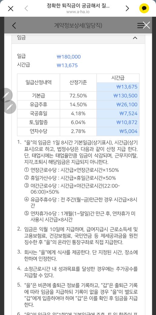 임금표를토대로하면 연차수당을