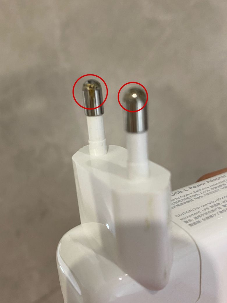 맥북을 계속 충전하며 한 자리에서 쓰고 있습니다. 그래서 그런지 충전기를 안 빼고 쓰는데 오랜만에 충전기를 빼보니까 꽂아지는 부분에 흠집 같은게 있더라구요. 노란색 같은 것도 보이고... 충전이 잘 안되는 것 같고...