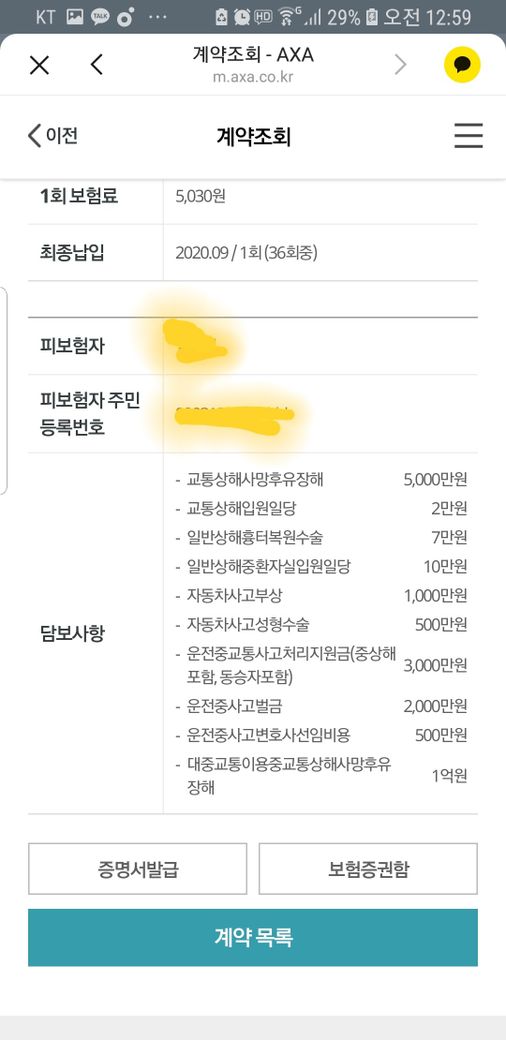자동차보험 / 운전자보험 보장내용 확인부탁드려요~