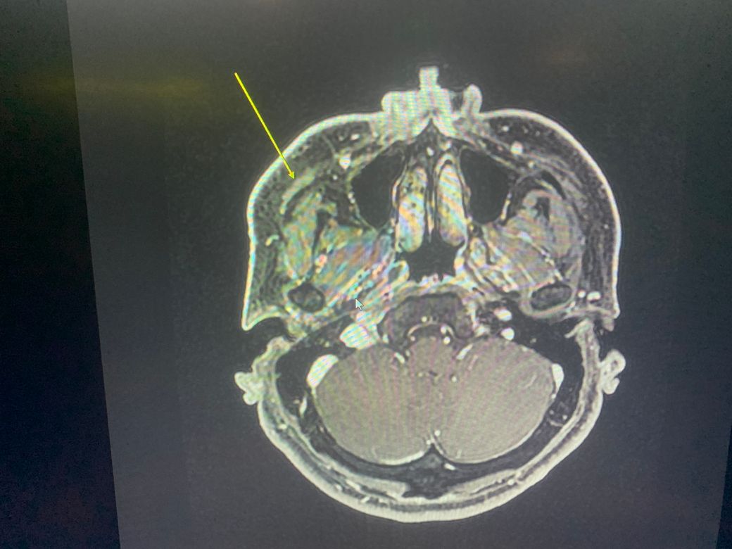 오육년전에 앞광대 바로 아래에서 뭐가 부러지는소리가 나고 지금까지 얼굴에 계속 부종 통증이 있습니다