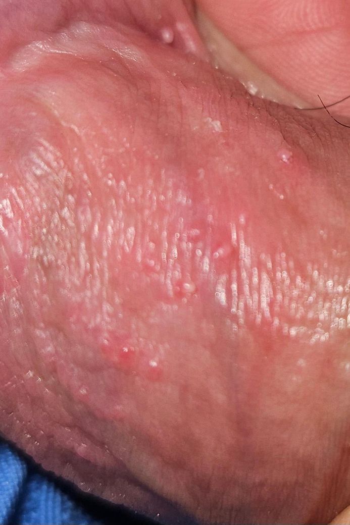 고환이랑 사타구니 사이에 이런 콩알같은게 났고 처음에는 통증이좀있더니 일주일사이에 사진처럼 작아지거나 흔적으로 남았고 그리고나서 성기기둥도 확인해봤더니 오돌토돌하게 올라온게있습니다. 헤르페스일가능성 높을까요?