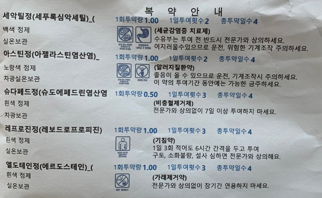 아래 사진이 처방받은 약봉투입니다. 생리통 약은 ‘이지엔6 이브’ 입니다